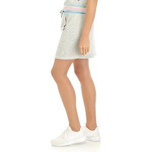 This women's Champion french terry campus skirts are NWT! The soft 82% cotton and 28% polyester french terry fabric is oxford gray. This athletic skirt features an elastic multi-color stripe waist band, a drawstring, a kangaroo pocket, mid-thigh length, and an embroidered multi-color script Champion logo on the left leg area.