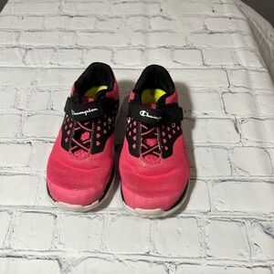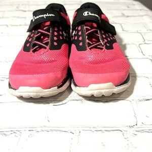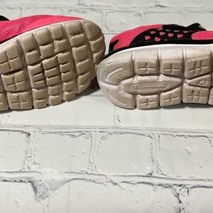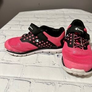 Black/neon pink with little neon pink hearts. chic sneakers that are comfortablA and chic.
