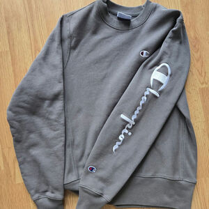 Champion reverse weave, logo crewneck sweatshirt, athletic pullover, gray champion top, streetwear crewneck, vintage style sweatshirt, unisex athleticwear, cozy casual top, embroidered logo sweater, sporty essentials