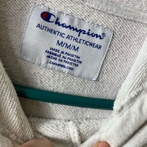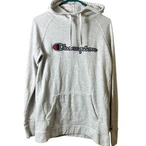 Champion Gray Pullover Funnel Neck Hoodie Iconic Logo Medium Streetwear Retro