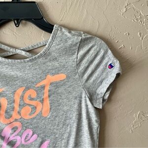 Embrace your style with this Champion gray t-shirt featuring vibrant pink and orange accents. Perfect for casual outings, this top combines comfort and fashion effortlessly.