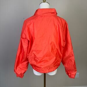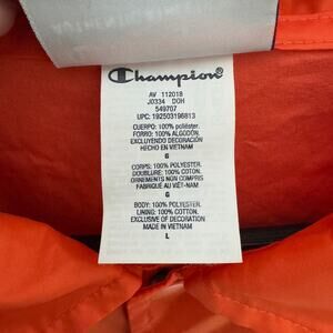 The Champion Snap Jacket delivers athletic heritage with its cropped silhouette and classic snap-front design. This vibrant orange jacket features long sleeves and a comfortable fit, perfect for layered streetwear or casual outings. Note the faint mark on the sleeve of this otherwise durable garment. The stretch fabric and retro branding provide both mobility and style, making it ideal for weekend wear, sporting events, or adding vintage athletic appeal to your wardrobe.