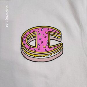 Champion Heritage Short Sleeve White T-Shirt Donut Logo Size: Large Mens