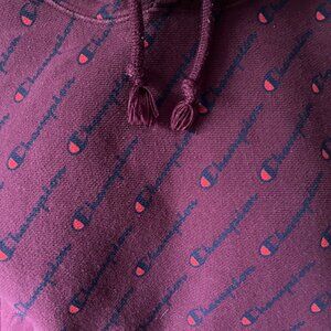 Champion Hoodie Adult Maroon Reverse Weave All Over Print Logo Sweatshirt
