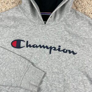 Champion Hoodie Mens Large Gray Long Sleeve Sweatshirt Solid With Logo