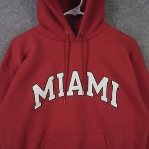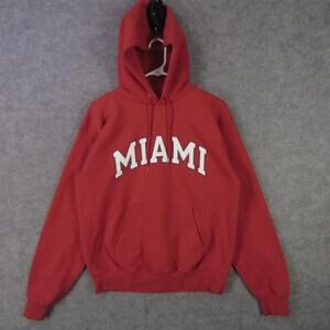 Champion Hoodie Mens Medium Red Miami Pullover Sweatshirt Kangaroo Pocket Warm