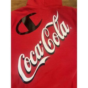 Champion Hoodie Mens Medium Red Reverse Weave Coca Cola Sweatshirt Adult **