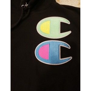 Champion Hoodie Sweater Mens M Medium Black Logo Spellout Reverse Weave …