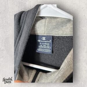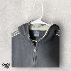 Champion Hoodie XL Black Half-Zip Logo Tape Kangaroo Pocket Athletic Wear Hoodie