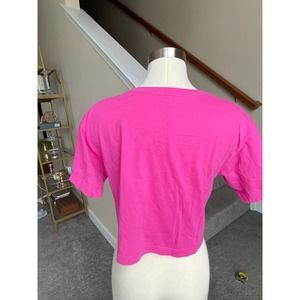 Champion Hot pink crop top with red logo, size XS. Great condition. Very cool contrast of colors. Fits true to size but is made to be boxy. Scroll through photos and zoom in for measurements.