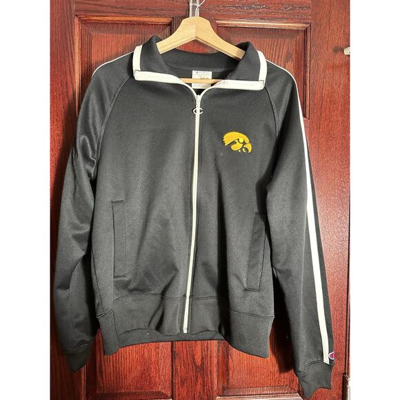 Champion Iowa Hawkeyes Full Zip Track Jacket Women’s Medium Black Gold Retro