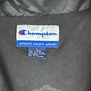 Champion Jacket Mens Large Black Blue Nylon Windbreaker Lined Full Zip Coat