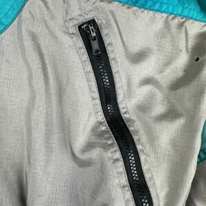 In fair pre owned condition. Has spotting and spotting residue on the sleeve. Has some holes near the zip pocket