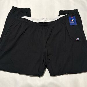 This is new with tags. The color is black. The fabric is 100 % cotton. These are knit. The inner drawstring waist is 44 inches stretches to 60 inches or can be made smaller. The length from top to bottom is 45 inches. 33 inch inseam. The stretch leg opening is 14 inches measured around. Two side pockets.