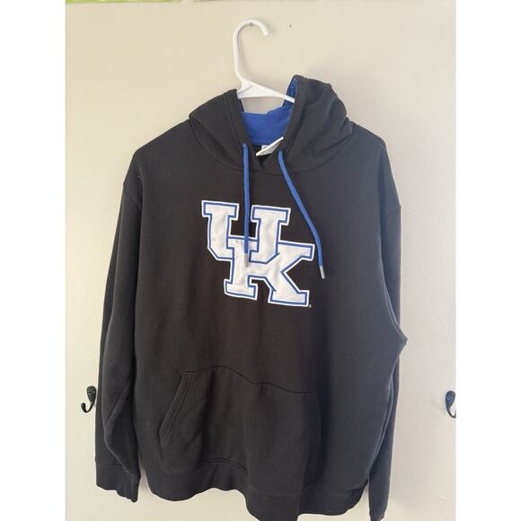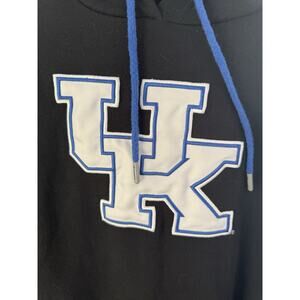 The product is a Champion Kentucky Wildcats hoodie sweatshirt in black with blue accents, featuring the team's logo. This XL size sweatshirt is perfect for fans of the Kentucky Wildcats looking to show their support in style. Made by the trusted brand Champion, this sweatshirt is a must-have for any college sports enthusiast.