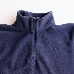A cozy fleece navy pullover that zips at the neck and works for boys and girls.