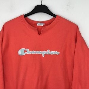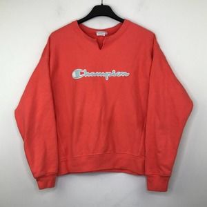 Champion L Sweatshirt Reverse Weave Pink Embroidered Logo Notch Pullover BC28