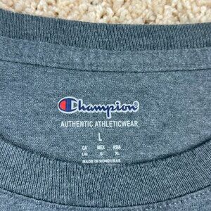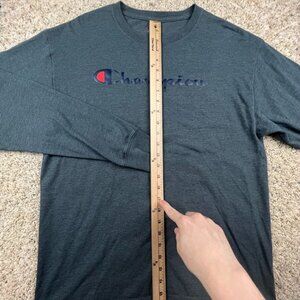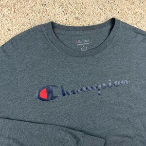 Champion Large Long Sleeve T Shirt Gray Men’s Casual Cotton SpellOut Logo