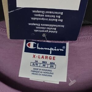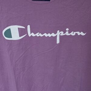 Soft lavender tee with iconic Champion logo. Ideal for everyday wear.