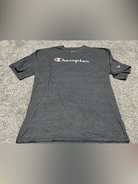 Champion Light Gray Men Crew Neck Short‎ Sleeves T-Shirt Size Medium Good preowned condition