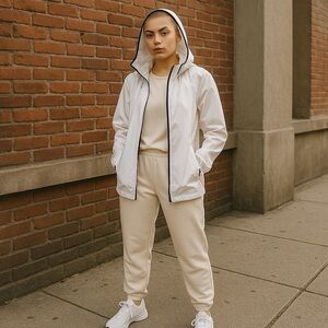 Champion Lightweight Polyester Jacket White/Black Trim Womens Size Medium ECU