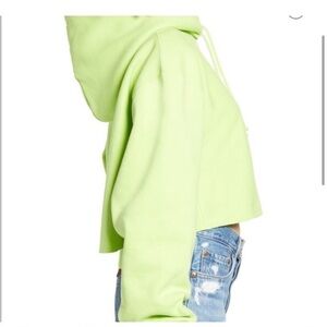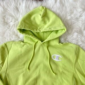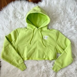 Champion Lime Neon Green Reverse Weave Cropped fleece Hoodie Heavyweight Small