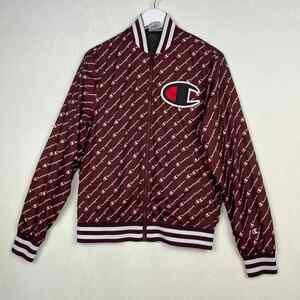 Champion Logo Men's Small Brown Athletic Bomber Satin Baseball Jacket Y2K