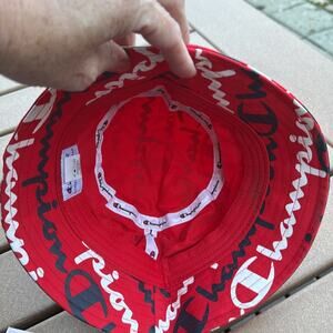 Champion Logo Script Bucket Hat Red All Over Print Spellout Beach S/M