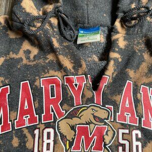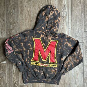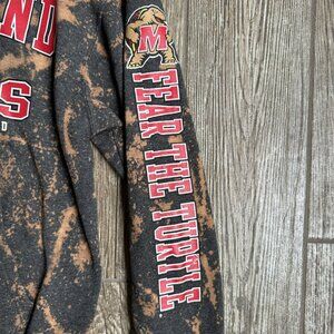 Embrace the spirit of the Maryland Terrapins with this unique bleached hoodie by Champion. Someone cut the top, see pictures. Adorned with the bold "Fear The Turtle" slogan, this eco-friendly fleece provides both warmth and style. Its intricate bleached pattern ensures each piece is one-of-a-kind. Perfect for any passionate Terps fan looking to showcase their team pride.