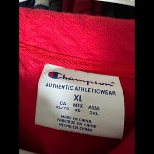 scarlet red, quarter zip, athletic, university logo, fleece, sportswear, collegiate style, casual outerwear, embroidered patch, collegiate sweatshirt