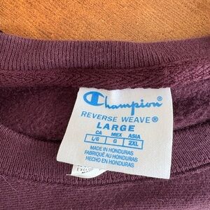 Champion reverse weave set in a deep purple color. Crew neck top. Jogger bottoms. Size L in both however fits closer to a medium. Selling as a set but willing to sell separately if interested.