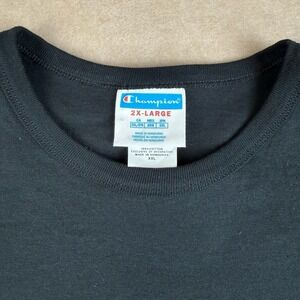 Champion Men 2XL Black Long Sleeve Shirt Script Logo Spellout Graphic Tee