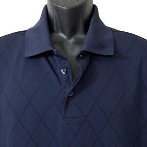 Champion Men XL Duo Dry Collared Lightweight Athletic Golf Polo Navy Blue Argyle Pattern 2” Side Vent Short Sleeves