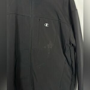 Champion Men’s Black Full Zip Lightweight Jacket Size Large is in overall great condition but on the front are some mark that i couldn’t get out. But is a great jacket otherwise. Collar is warm