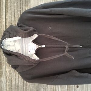 Champion Men's Black Hoodie Sweater, size XLT, extra large tall, long sleeves, approx 31 inches in total length, hoodie with tie in the front, good pre loved condition, pockets in front