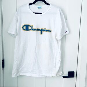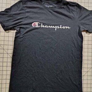 Sleek black tee by Champion. Ideal for everyday comfort. Short sleeves for a relaxed fit.