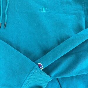 Classic Champion hoodie in a rich blue shade. Features a comfortable fit and iconic logo. Ideal for everyday wear.