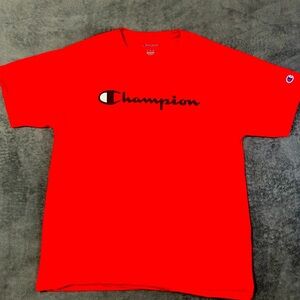Classic dark blue tee with bold Champion logo. Soft fabric for everyday comfort. Ideal for casual outings. size large. worn once. from clean smoke free home.