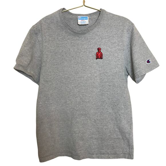 Champion Mens Gray Embroidered T-Shirt Small Short Sleeve Crew Neck