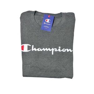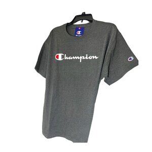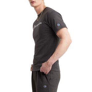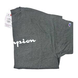 Champion Mens Dark Grey Script Logo Short Sleeve T Shirt Sz L NWT