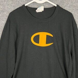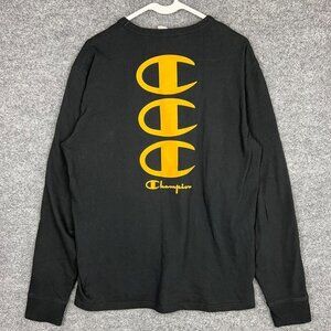 Champion Mens Long Sleeve Black Shirt Size M with Logo on Front/Back