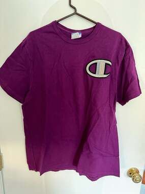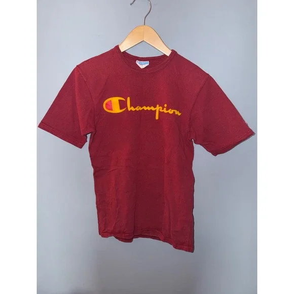 Champion Mens Maroon Burgundy Short Sleeve Script Logo T-Shirt Small
