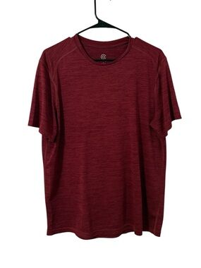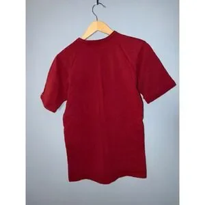 Keywords: Athletic, Streetwear, Collegiate, Maroon Tee, Script Logo, Sporty, Casual, Gorpcore, Retro, Vintage Style, Loungewear, Gym Wear, Everyday, Classic, Minimalist