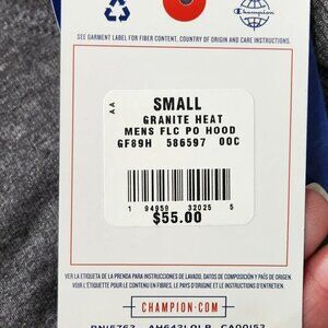 Champion Mens NWT Granite Heat Pullover Hoodie S Gray Embroidered Chest Logo