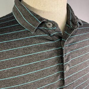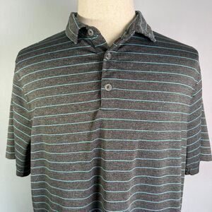 Champion Men's Performance Polo, Gray and Teal Blue Stripes, Size XL, Golfing