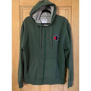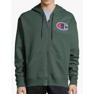 Champion Mens Powerblend Fleece Full Zip Logo Hoodie Large Green Olive AN NWT.