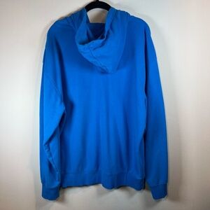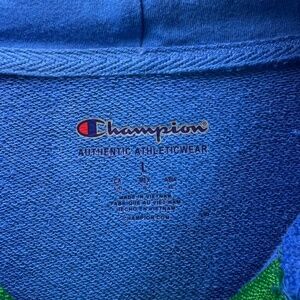 Champion 1/4 Zip Hoodie Blue Pullover Long Sleeve Embroidered Logo Green Front Quarter Zip Front Kangaroo Pocket