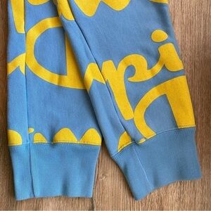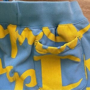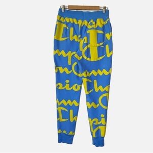 Champion Men’s Reverse Weave Joggers Giant Script All Over Print. 2 front pockets and one back pocket. These blue and yellow joggers can be unisex. In very good preloved condition.