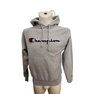 Champion Mens Reverse Weave Spellout Script Patch Logo Gray Hoodie S