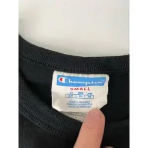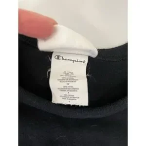 Champion Men's S Short Sleeve Heritage Tee Black With Blue Script Logo Cotton